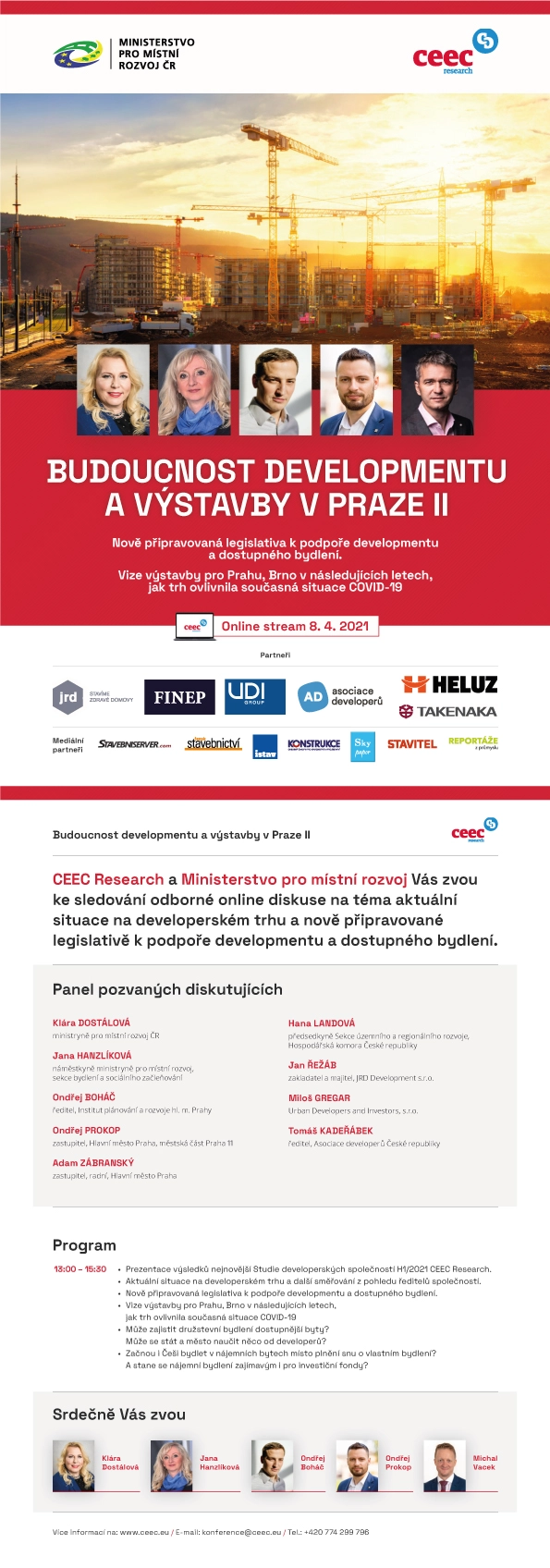 CEEC Research a Ministerstvo pro místní rozvoj Vás zvou ke sledování odborné online diskuse na téma aktuální situace na developerském trhu a nově připravované legislativě k podpoře developmentu a dostupného bydlení.