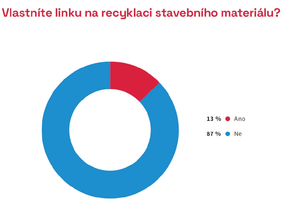Tato myšlenka rezonuje také s plány stavebních společností oblasti pořízení linky na recyklaci stavebního materiálu. Z dotázaných společností v současné chvíli vlastní linku na recyklaci stavebního odpadu pouze 13 %, zbylých 87 % tuto linku nevlastní