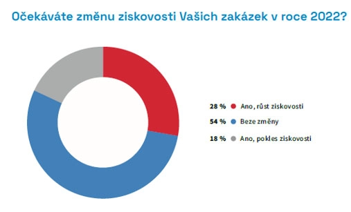 Změnu marží svých zakázek plánuje 46 % dotázaných společností. Více jak čtvrtina bude své marže zvyšovat (28 %) a necelá pětina je naopak sníží (18 %). Žádné změny v této oblasti neplánuje více jak polovina dotázaných (54 %).