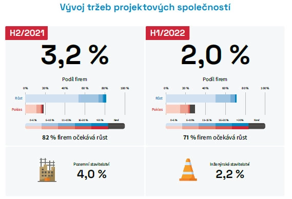 V současné chvíli jsou kapacity projektových společností vytíženy na 97 %. V prvním pololetí roku 2022 projektové společnosti očekávají využití svých kapacit až z 94 %.